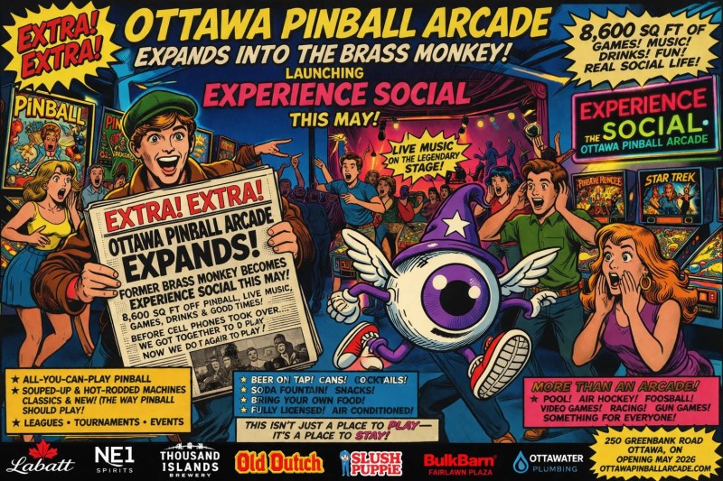 Ottawa Pinball Arcade Expands Into 8,600 Sq Ft Former Brass Monkey Venue, Launching “Experience Social” This May